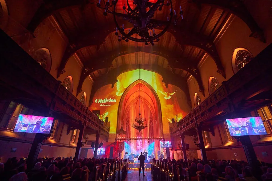 An expressive evening where Piazzolla’s music comes alive in the grandeur of the church, enhanced by light and video projection.